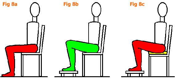are lower, or by using footrests, Fig 8b. It is better to sit on